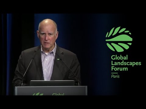 US Governor of California, Edmund G. Brown Jr. “Jerry”, speaks at the high-level plenary session from the second day of the Global Landscapes Forum 2015, in Paris, France alongside COP21.